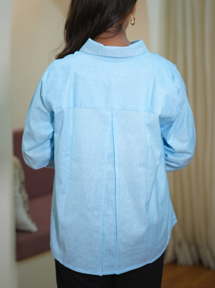 Organic Cotton Based Shirt with Big Pocket with Pintucks