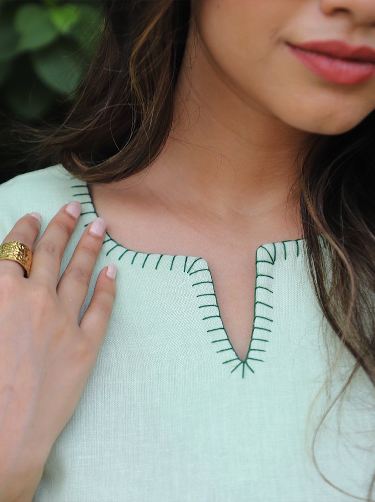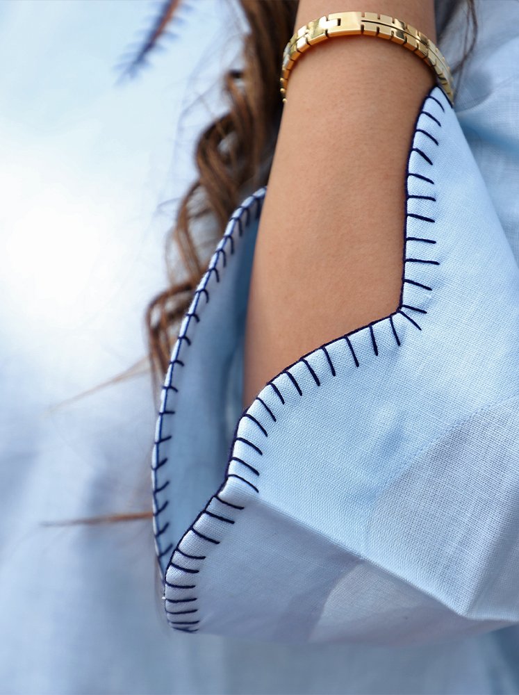 Work- Blanket edge hem stich on Top-hem, sleeves and bottom